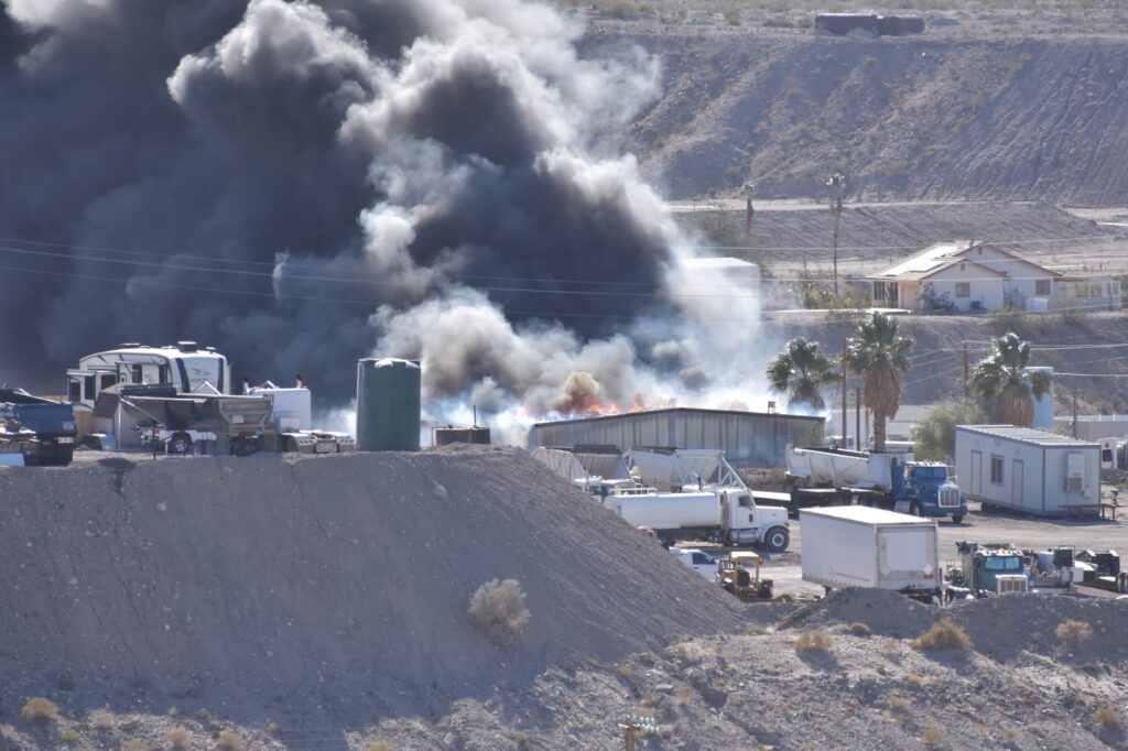 BULLHEAD CITY, Ariz. – December 24, 2023 – The Bullhead Fire Department was dispatched to the report of a brush fire at approximately 12:40 p.m. this afternoon, which was quickly upgraded to a working commercial fire at Daniels Septic on Outpost Dr. with heavy black smoke showing. Arriving crews quickly confirmed that the building was clear and began an aggressive fire attack.