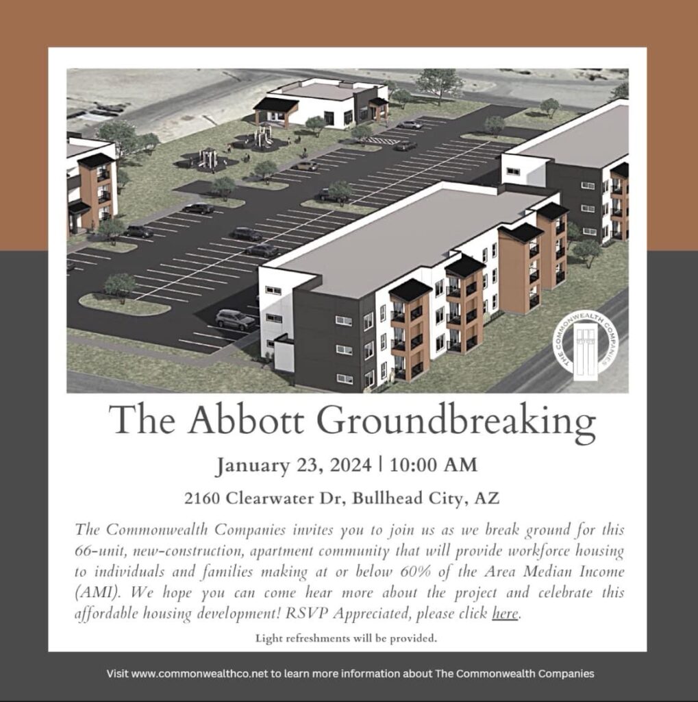 A groundbreaking was held 1/23/24 for a brand new 66 unit apartment complex at the intersection of Clearwater and Riviera in Bullhead City.